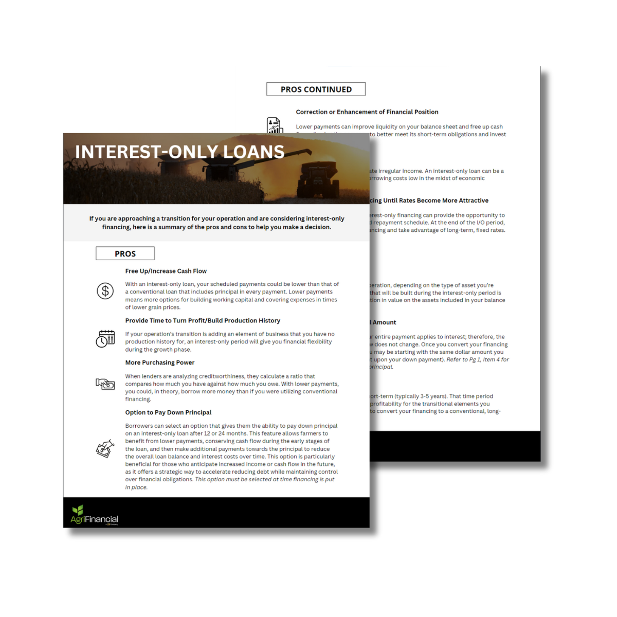 Transition Financing Summary Loan Amount: $700,000 I/O for 3 years Semi-annual payments Farmer B currently has a combined 860 acres in crop production, with 360 of them organically certified ground…